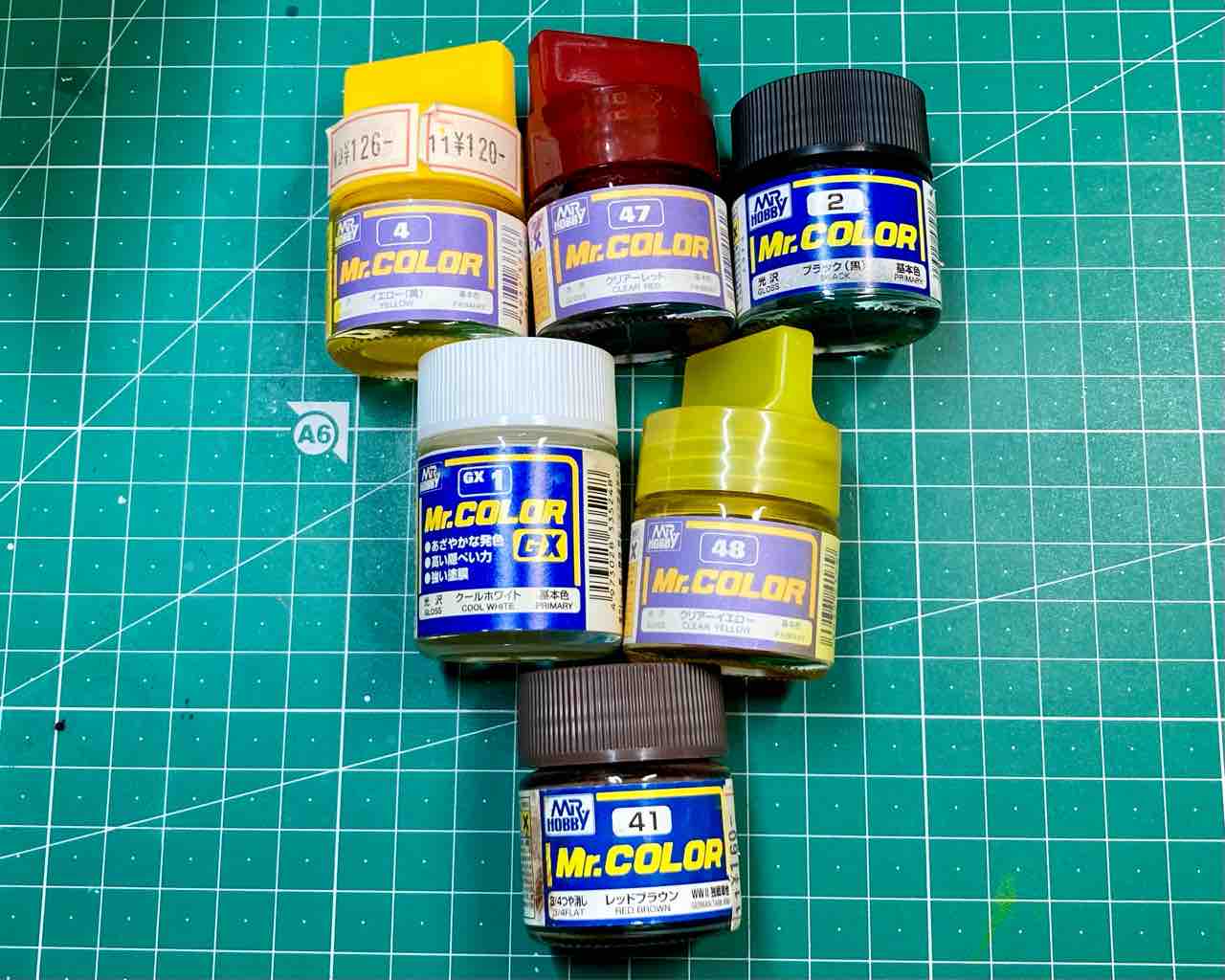 普段プラモデルを作っておられる方はご存知かと思いますが、ラッカー塗料の上から重ね塗りして、もし失敗しても下地塗装に影響なく拭き取れるので、細部の塗装はエナメル塗料を使うことが多いです。